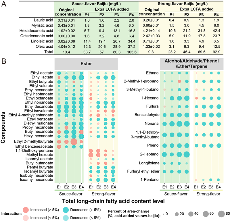 本研究首次确证了长链酸类化合物对白酒风味品质的作用,并解析了其作用机制,为白酒生产中的质量控制和发酵后工艺优化提供了重要的见解。