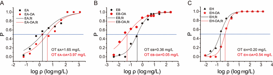 乙酸乙酯、己酸乙酯的察觉阈值在有油酸的情况下增加,而丁酸乙酯的察觉阈值降低