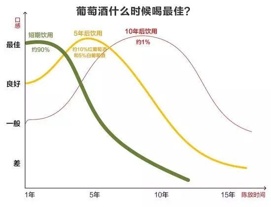 市面上销售的日常饮用餐酒,大部分都适饮期都在3-5年之间,并不具备陈年的能力。有些酒款甚至需要在1-2年内喝掉,比如博若莱新酒等。