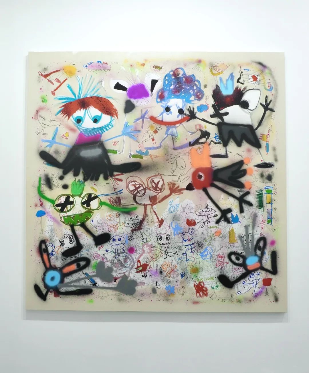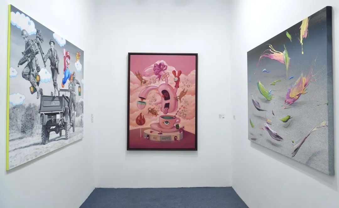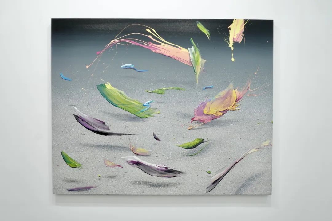 Xavi Carbonell's work in the exhibition, also new for 2023, continues his usual graffiti style, with the size and colour contrasts of the objects in the picture becoming more polarised, yet maintaining a subtle balance in the midst of the clash; Presenting a similarly delicate contradiction is Juan Miguel Palacios's work " "Variations-20", where paint strokes splash in the void, but the thickness and shadow give them the ability to cross between the plane and reality, and the identity of the abstract elements becomes multiple at this moment.
