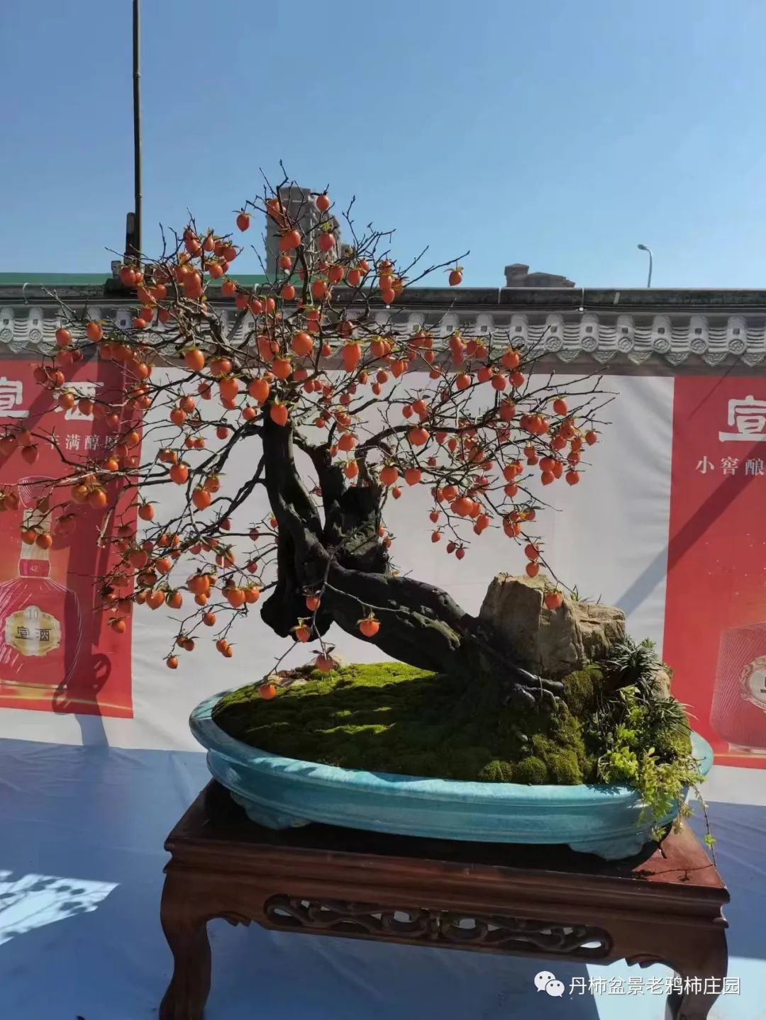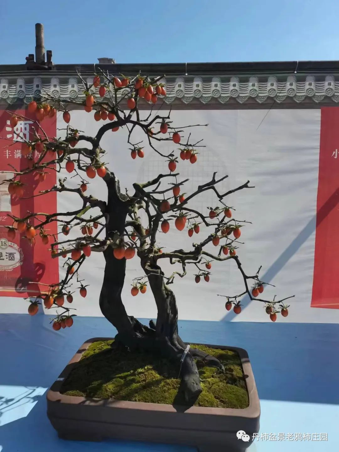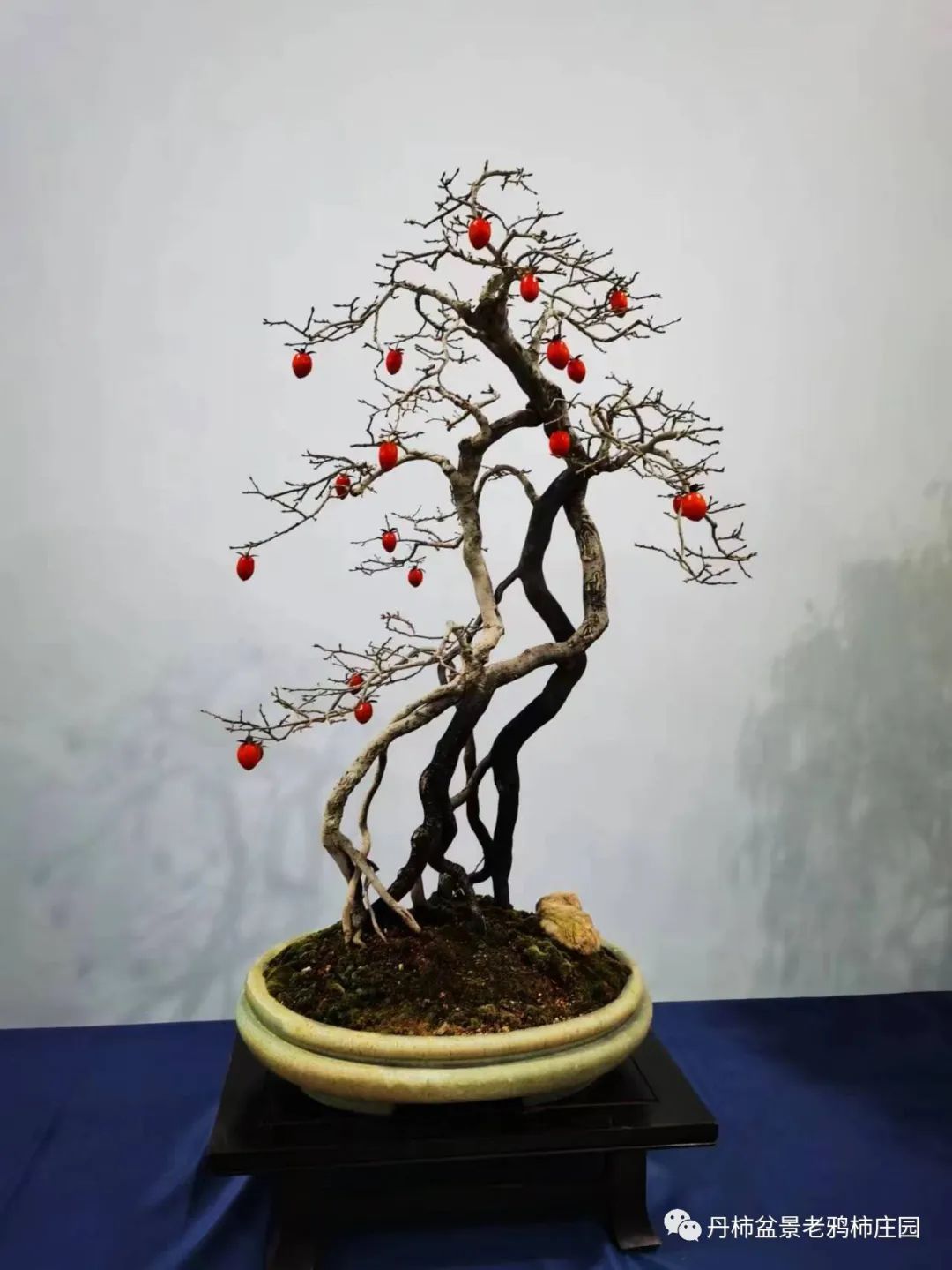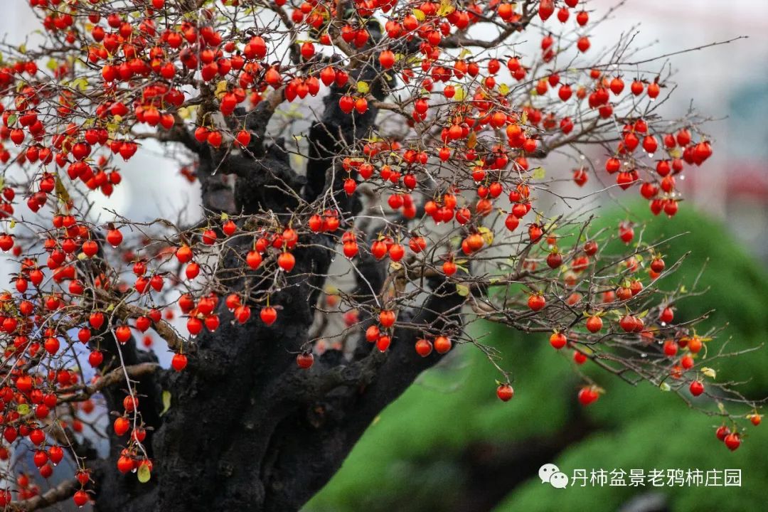 老鸦柿盆景 老鸦柿树形态优美,枝条曲折盘旋,果实挂满枝头。