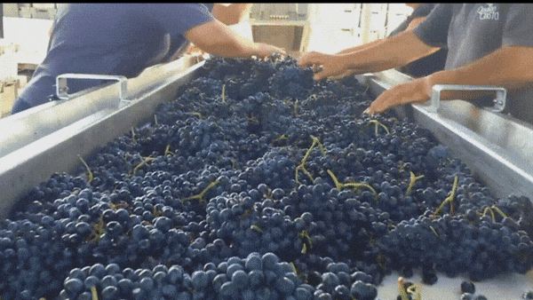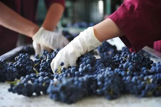 葡萄采摘回来后,工人们需要对葡萄进行初步的筛选。在开始发酵之前需要对葡萄进行筛选,将成熟度不够的葡萄、腐烂的葡萄、多余的树叶或其它非葡萄的东西去除掉。