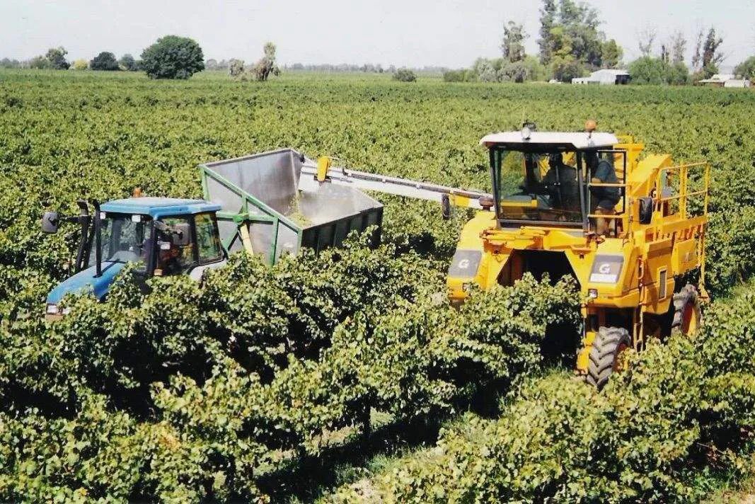 机器采收则是通过用机器摇晃葡萄树的主干,将葡萄抖落下来。这种方式无法对葡萄进行筛选,但胜在速度快,而且对人力要求较低。