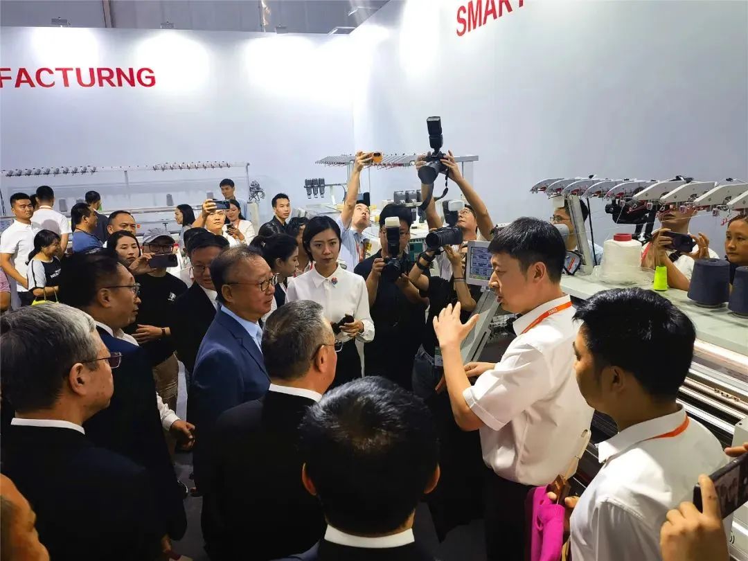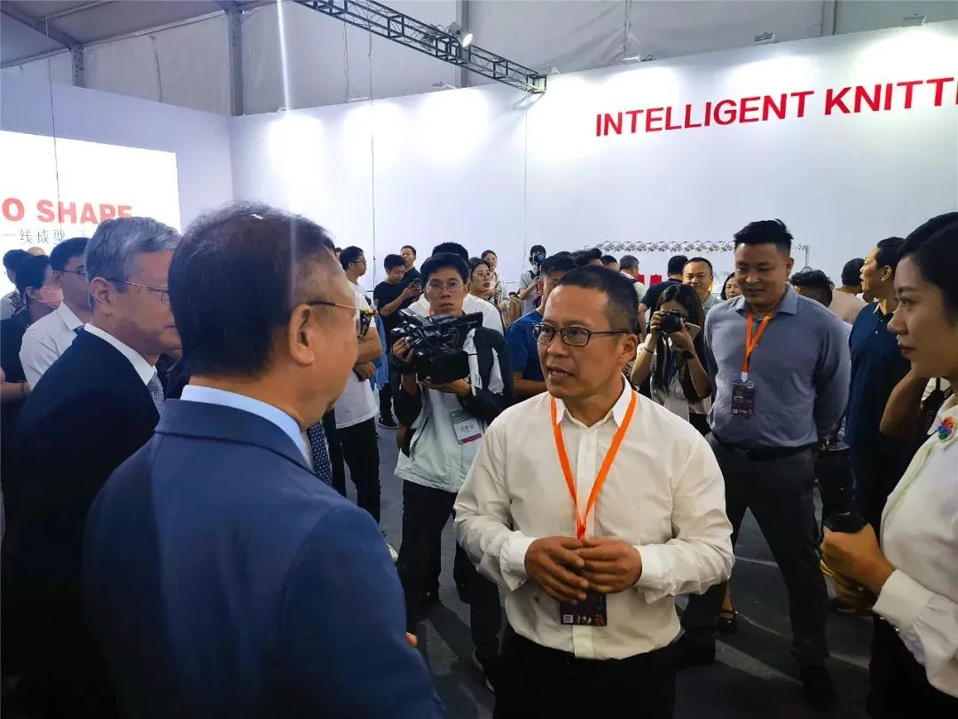 “织交会”首日,慈星智造馆就吸引了众多参观者前来咨询、交流,现场门庭若市,人气爆棚。中国纺织工业联合会会长孙瑞哲等一行人莅临参观,慈星股份董事长孙平范亲自接待并向各位领导介绍了慈星股份最新研发展出的一线成型电脑横机,他表示:“为全面满足针织机械行业在转型升级过程中对智能制造的迫切需求,现场展示出了数量众多的智能系列产品,新品精品连连。包括有KS3系列一线成型电脑横机以及STG860经典系列,这些都代表了当今一线成型横机技术上最高水平,让不同客户有更好的选择。”