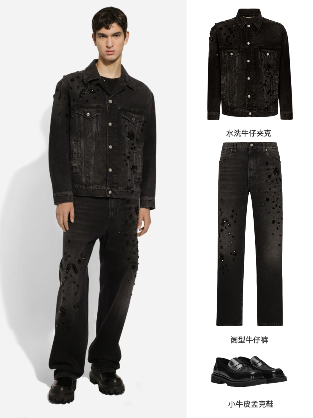 杜嘉班纳设计师创新打造珠串缀饰与牛仔面料结合,让男士穿出时尚质感。