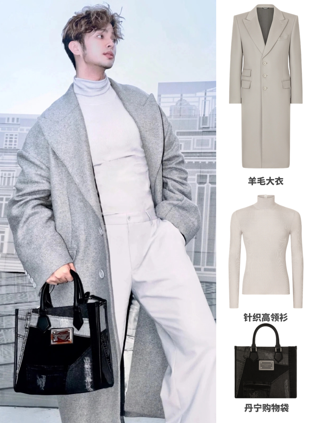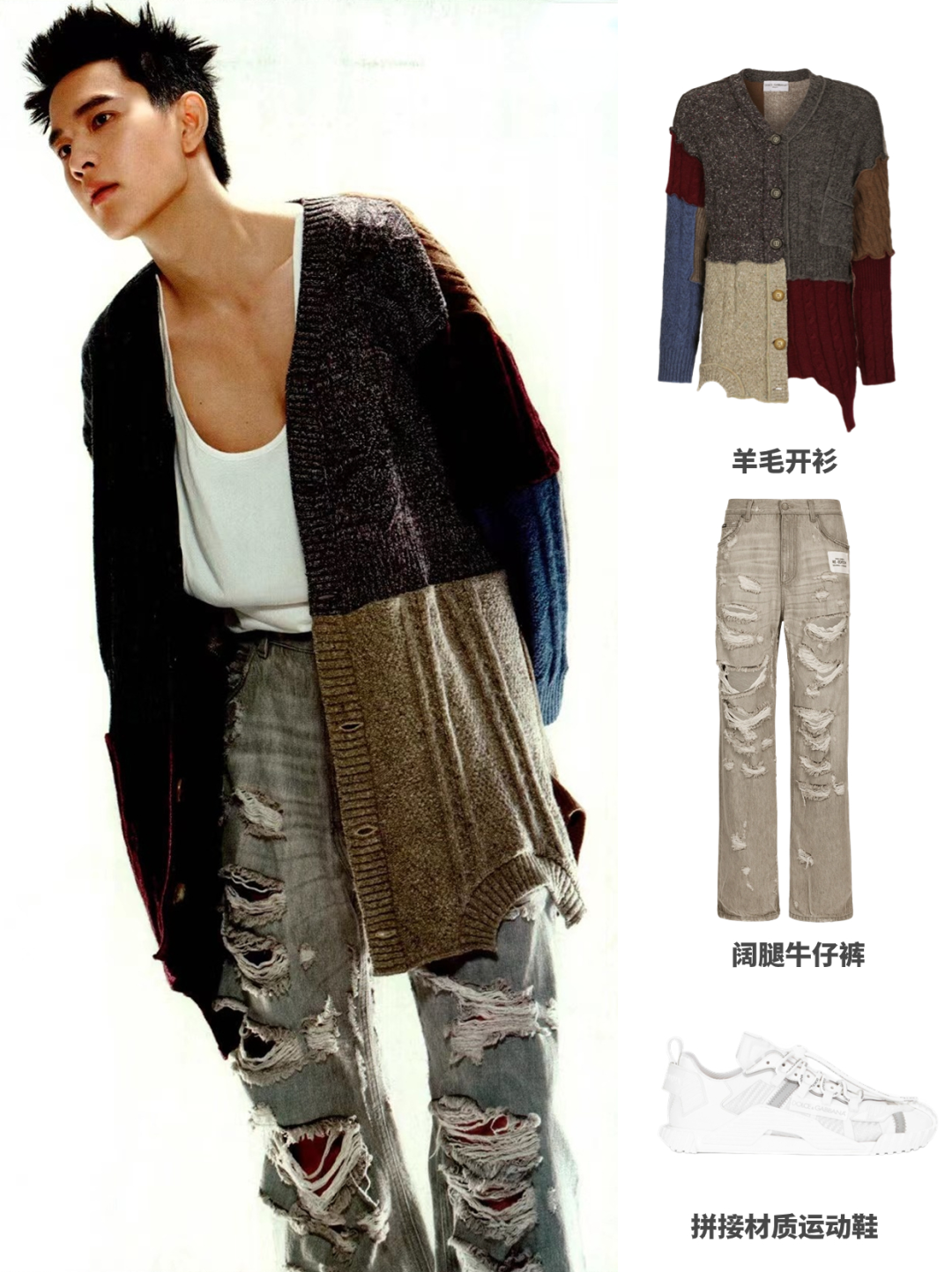 拼色羊毛开衫和阔腿牛仔裤也是该系列的经典之选,男士就该这样穿!