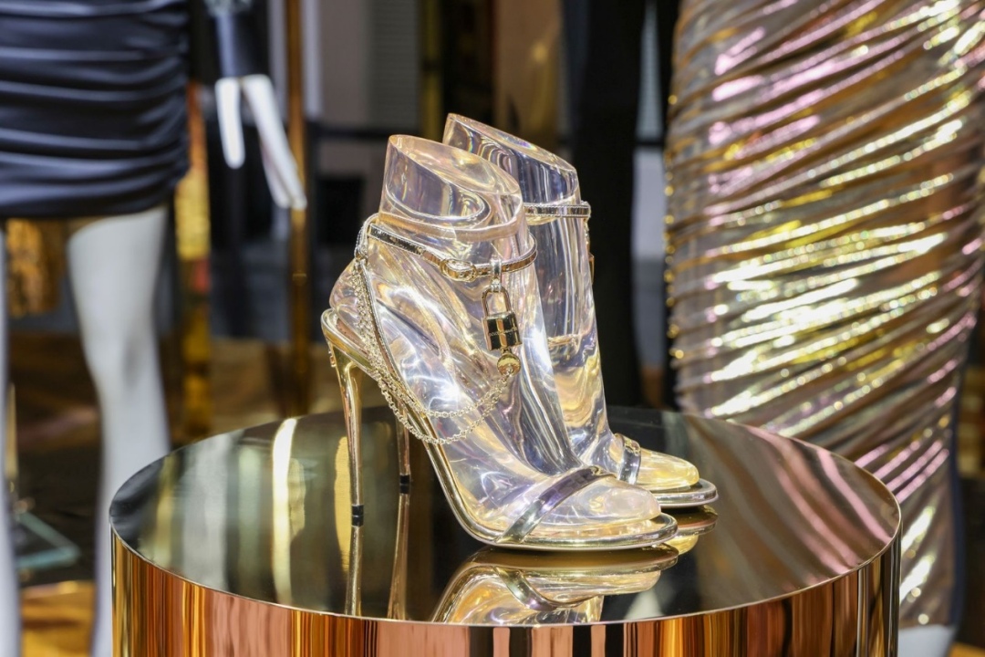 面对展台的左手边是杜嘉班纳女装展区,RUNWAY女装系列以感性细腻颠覆性感定义,展示当代女性宛若天成的真我本色。蕾丝、薄纱和雪纺材质覆上肌肤,勾勒轮廓,轻盈透明,不刻意却又极具风情。品牌经典的黑色、金色、红色描绘女性的性感与神秘。