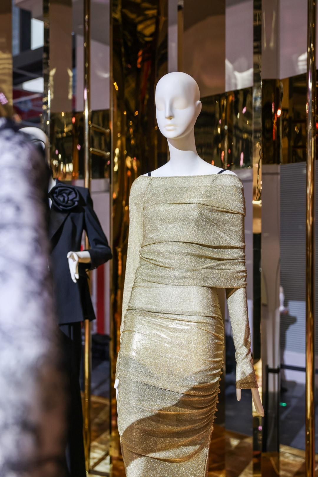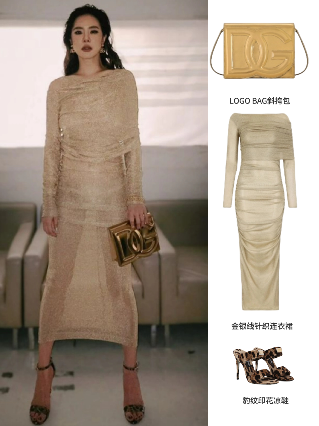 金银线针织款连衣裙可以说是该系列的“明星”单品,搭配鎏金色的镜面LOGO BAG斜挎包将品牌经典再度完美展现。