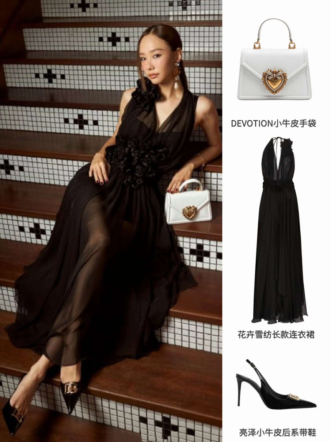 在出席重要场合时也可以选择DEVOTION手袋搭配RUNWAY女士系列花卉雪纺长款连衣裙,任何场合都能赚满眼球。
