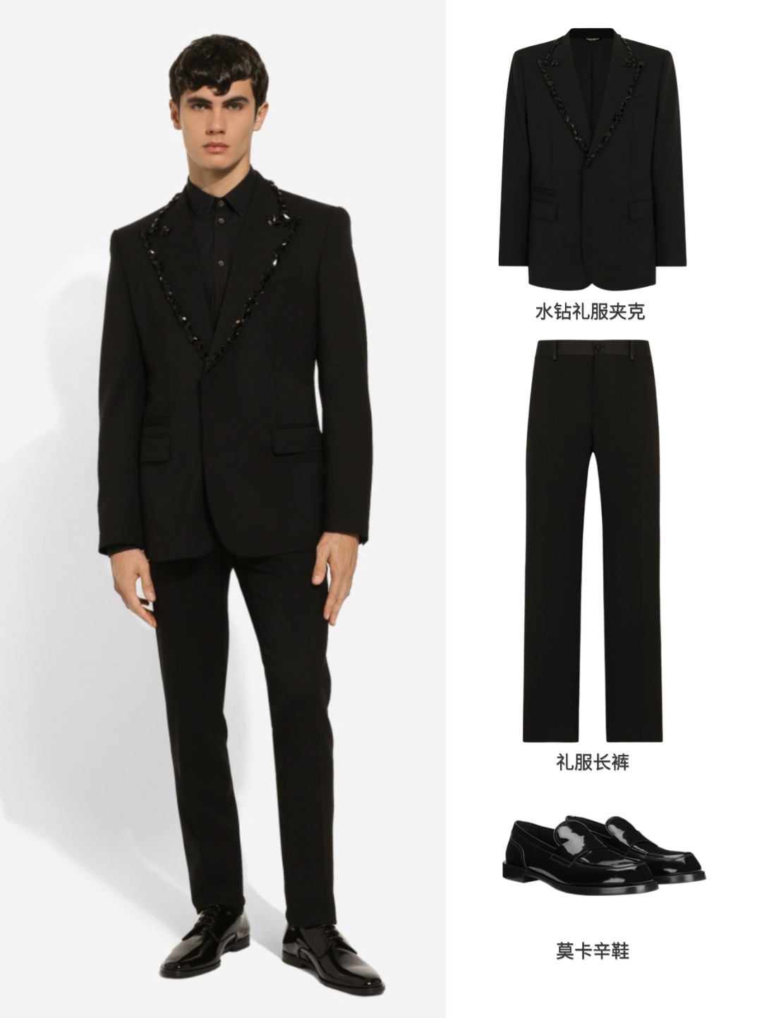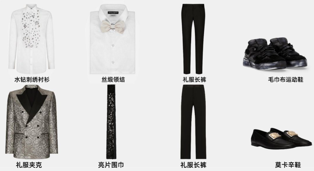 DG最近还上新了HOLIDAY男士系列,水钻礼服夹克搭配礼服长裤,体验奢感穿搭。