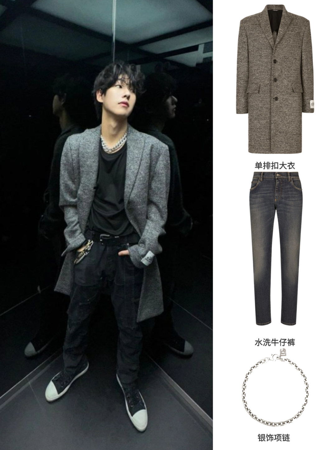 D&G的RE-EDITION系列打造男士复古经典穿搭。单排扣大衣搭配银饰项链让男士穿出复古型格。