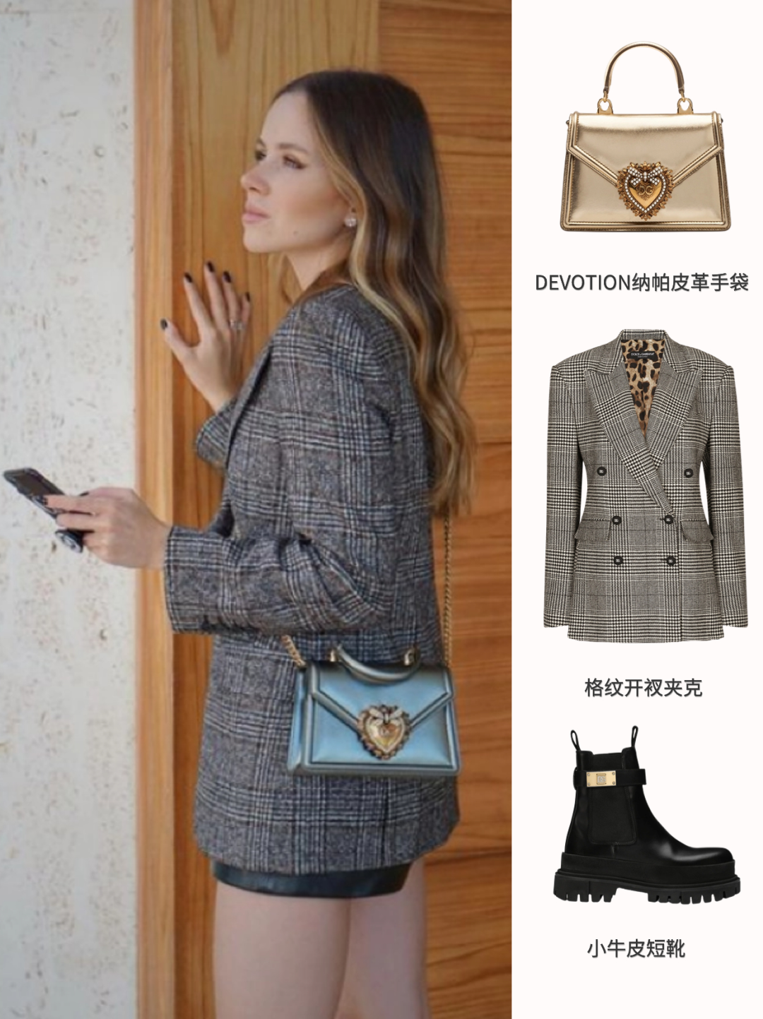 DEVOTION手袋可以日常搭配格纹夹克,休闲气息十足。