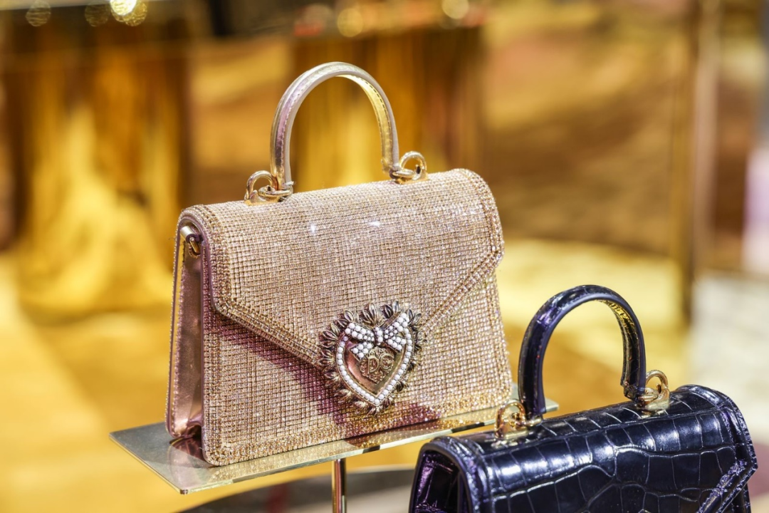 继续逛逛,杜嘉班纳又给我带来了惊喜。极具品牌设计风格的DEVOTION手袋映入眼帘。圣心Sacred Heart代表了杜嘉班纳的品牌信仰,包含了Dolce &Gabbana 美学、文化和情感价值根源。DEVOTION手袋极具巴洛克艺术风格,缀有珍珠和尤加利叶,并通过金丝细工高级珠宝手工艺打造别样的设计风格。今年进博会的现场还打造了进博会特别版DEVOTION手袋。
