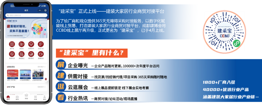 2024CCBD中国成都建博会将更新升级展览内容和结构,链接家居建装上下游品牌企业,汇集五湖四海的厂家、经销代理商、装饰公司、设计师、房地产商、建筑装饰施工单位、家居卖场、产业园区、行业协会媒体等齐聚成都,打造成熟的大家居建装生态,挖掘商机,共谋发展。