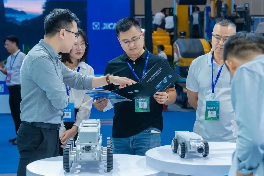 佛山建发集团展区内,观展人员正在了解智能管道检测机器人。