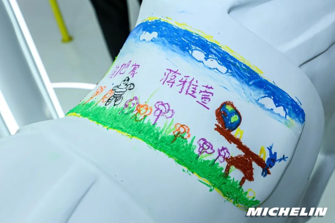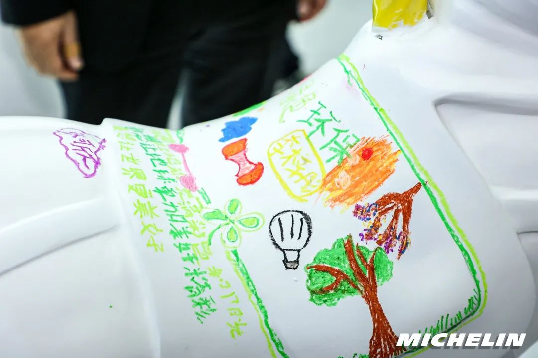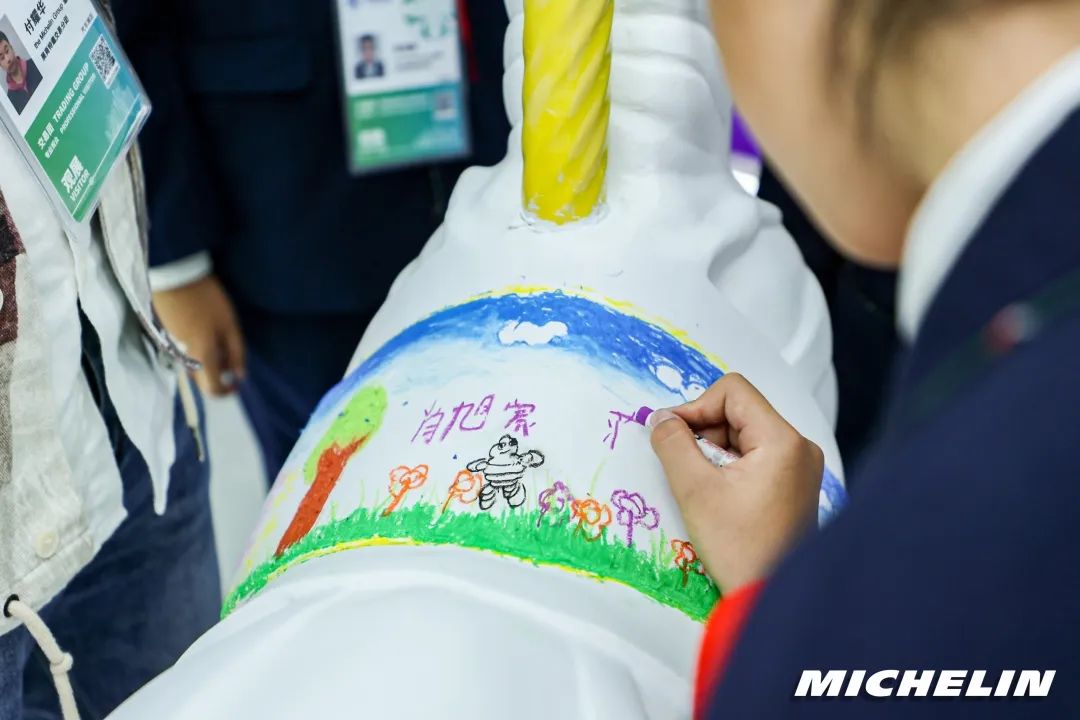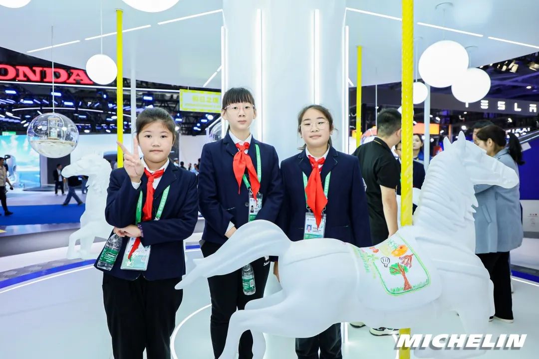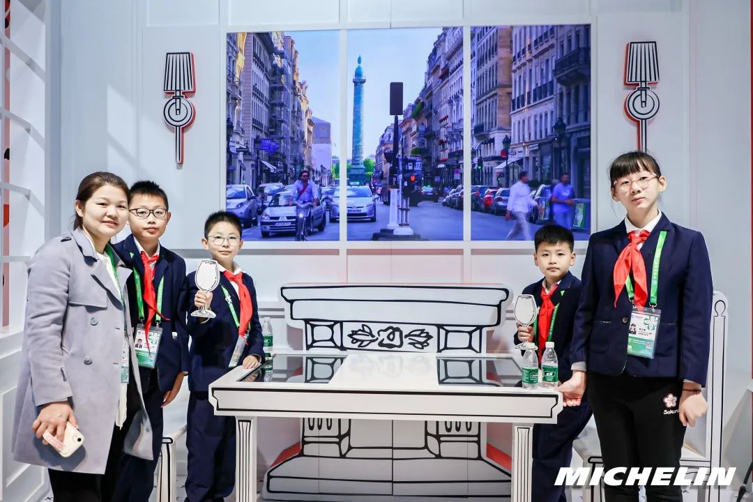 五1班朱梓阳:在米其林展馆,我们看到了利用环保材料制作的新能源轮胎,他们基本上是用“垃圾”和橡胶制成的,用在摩托车和汽车的轮胎上。