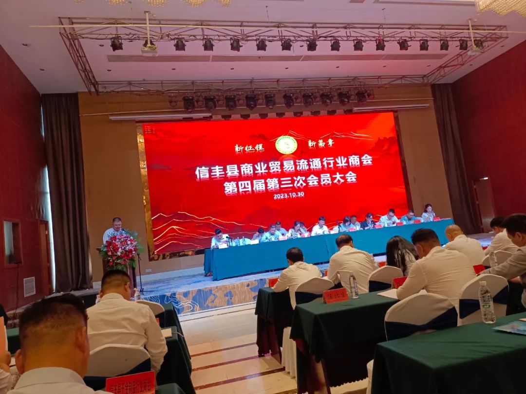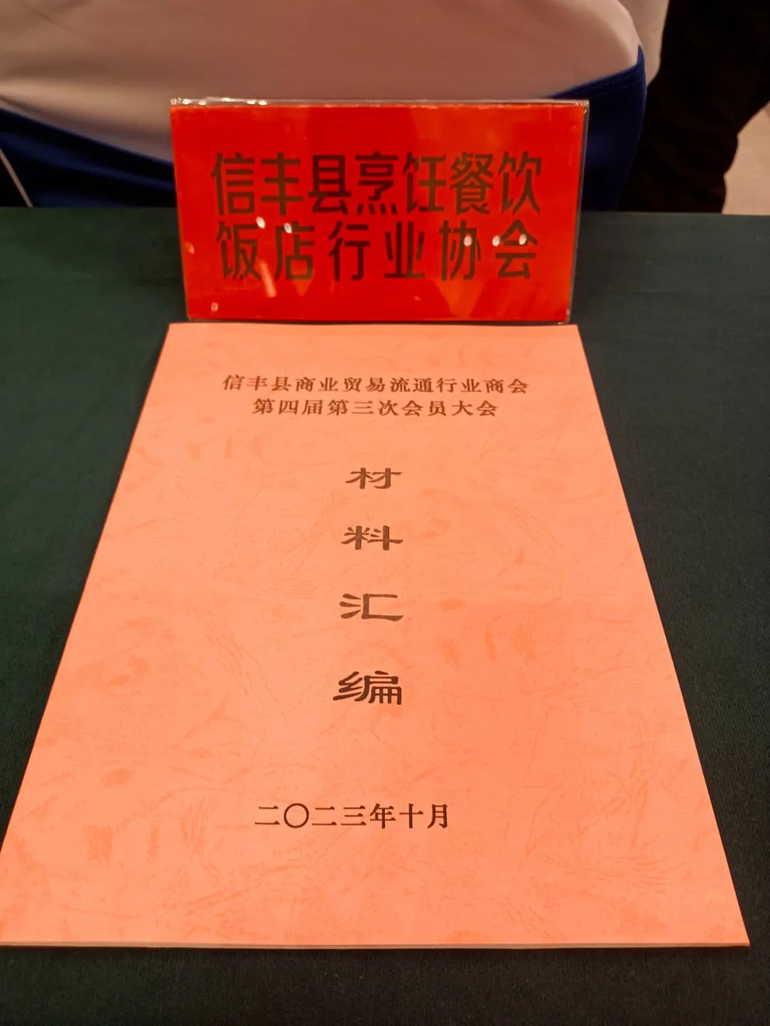 10月30日下午,信丰县商业贸易流通行业商会第四届第三次会员大会在桃江大酒店隆重召开,县烹饪餐饮饭店行业协会向大会发了贺信,会长罗会斌和工会主席陈文兵受邀参加了会议。