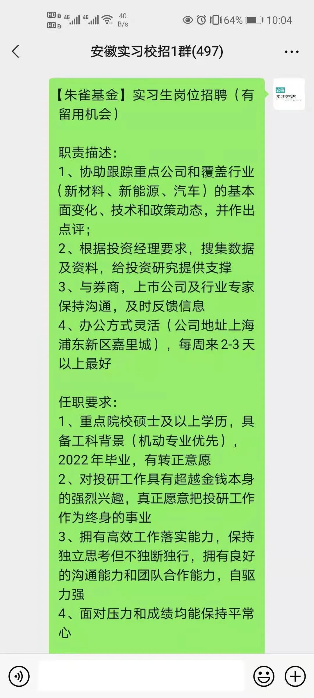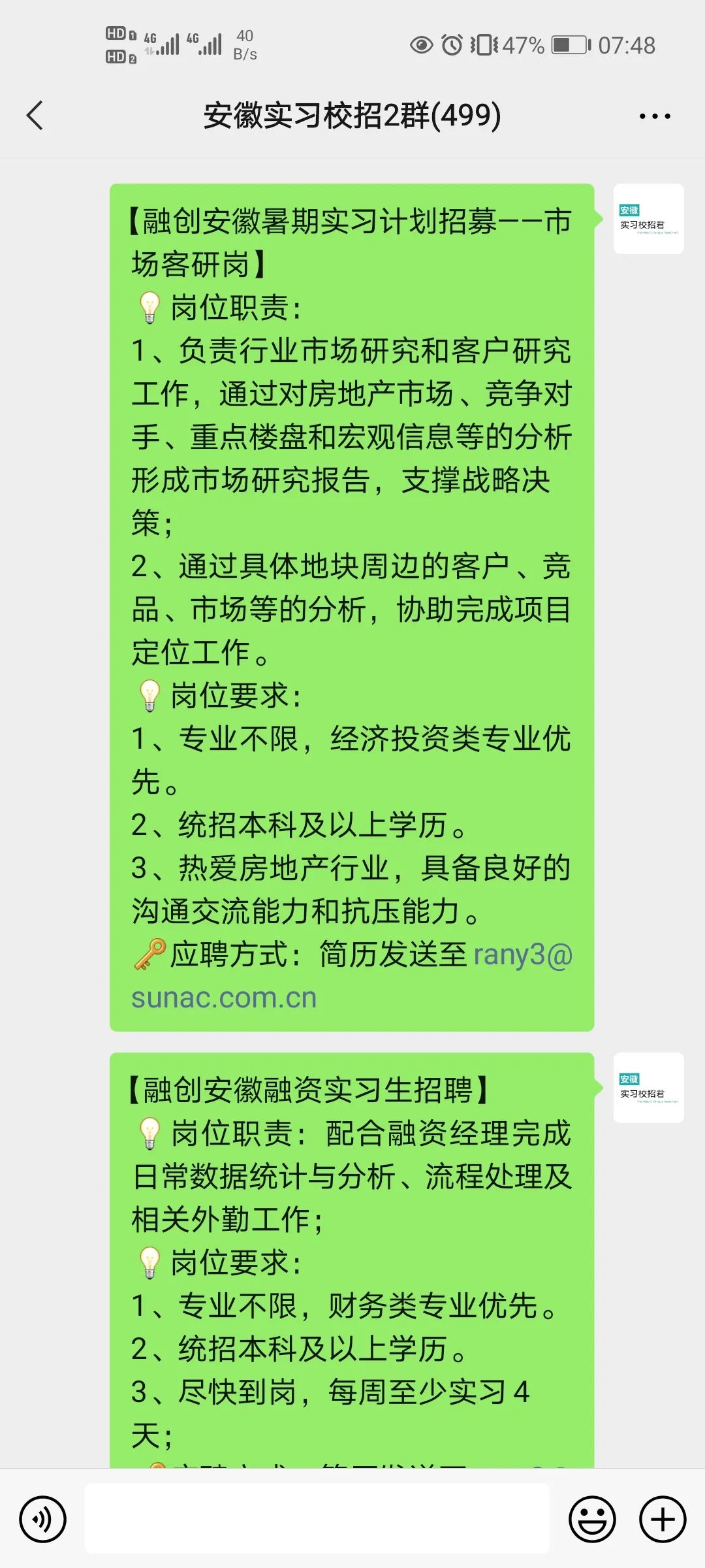 小助手会在每天早上通过好友并拉进安徽实习微信群哦