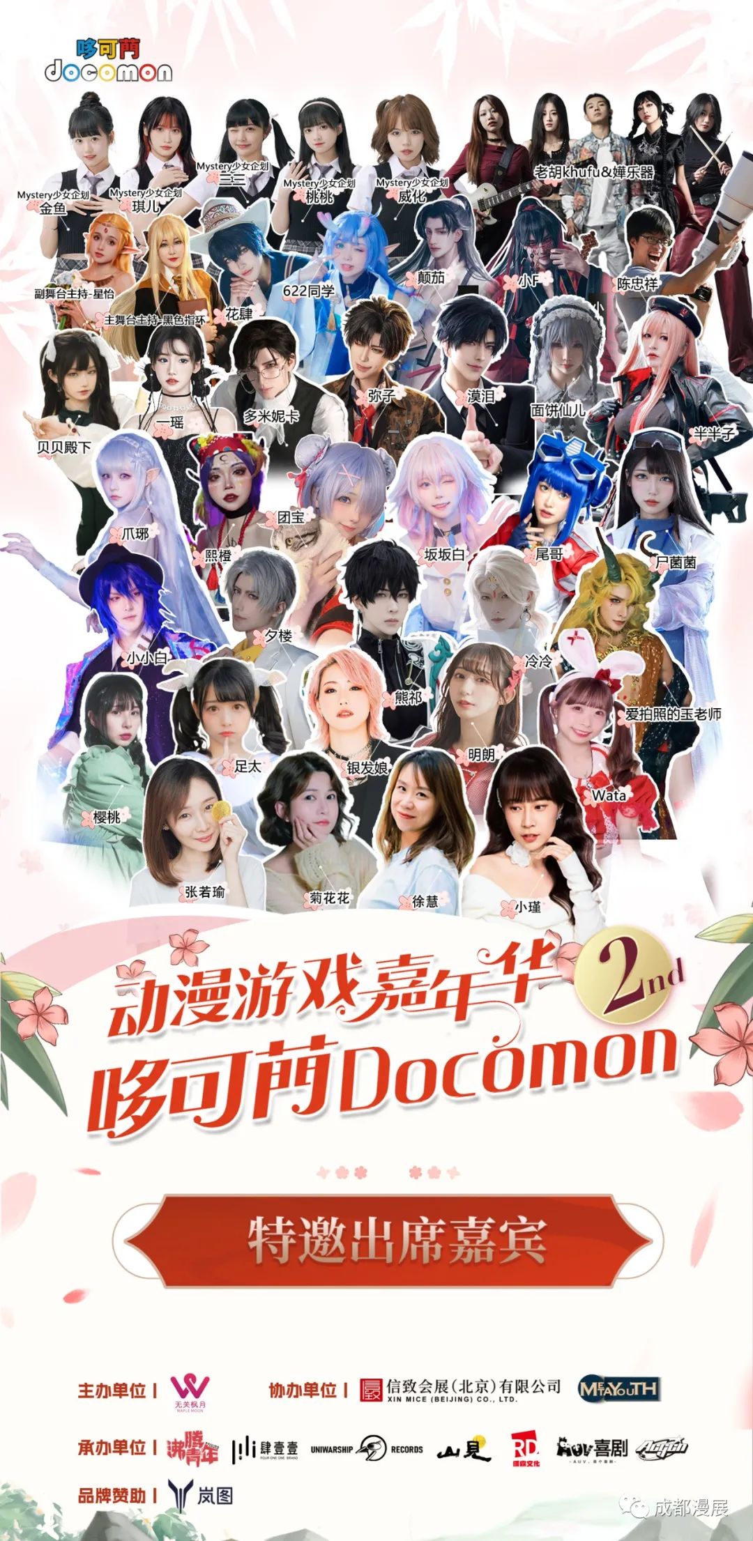 日籍舞见银发娘,足太,明朗,樱桃,wata;知名配音演员菊花花,徐慧,张若瑜,小瑾;更有多名知名coser,小小白,熊祁,颠茄小F,六二二同学,尸菌菌,坂坂白等超多重磅嘉宾惊喜来袭!!史上最多最爆款嘉宾!保证亮瞎你们的大眼睛!