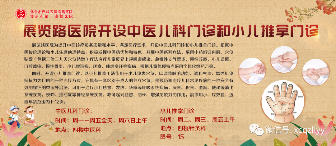 展览路医院开设中医儿科门诊和小儿推拿门诊