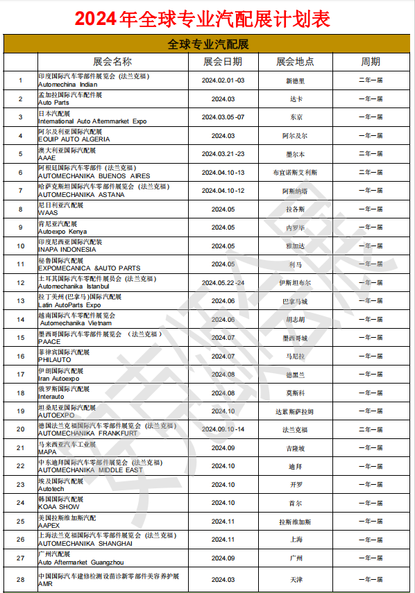 配件:轮胎和轮毂、润滑油、零配件、组件维修和工具