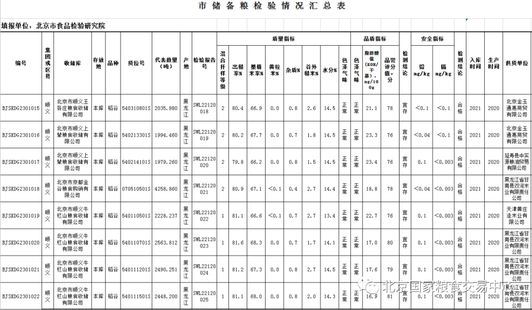 二〇二三年北京市储备粮油第一次竞价交易会清单