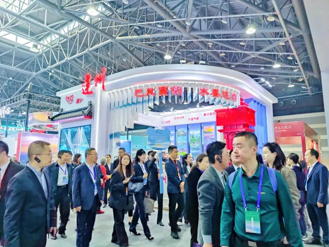 在达州大竹展位上,工作人员精心地布置展位,东汉醪糟、国礼白茶、巴野飨食品等特色旅游商品摆放整齐,现场发放了大竹文旅宣传资料,播放了大竹文旅宣传视频及歌曲,充分展示了“大道至简·虚怀若竹" 的大竹新形象、大美自然风光和厚重的人文底蕴以及独特的文化旅游资源,成功吸引了众多国内外游客走进大竹展位打卡拍照、品美食、购特产、了解大竹文旅。