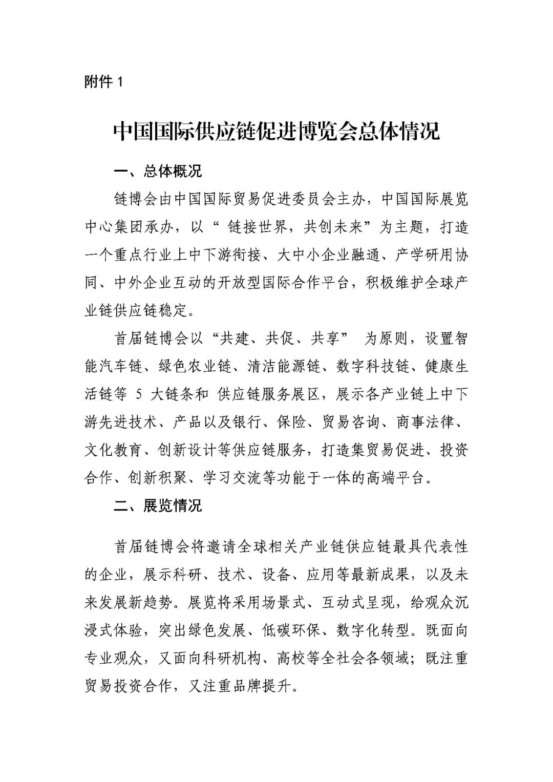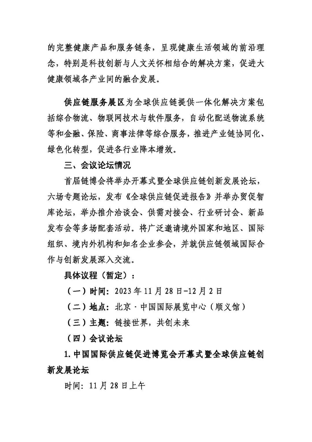 2023年11月28日至12月2日,由中国贸促会主办,中国国际展览中心集团承办的中国国际供应链促进博览会(以下简称首届链博会)将在北京举办,这是全球首个以供应链为主题的国家级展会。党和国家领导人将出席开幕式并致辞、巡馆,各省区市政府有关负责同志将带队出席,有关国际组织负责人和来自50多个国家和地区的参展商、采购商、专业观众和商协会领导将观展参会。