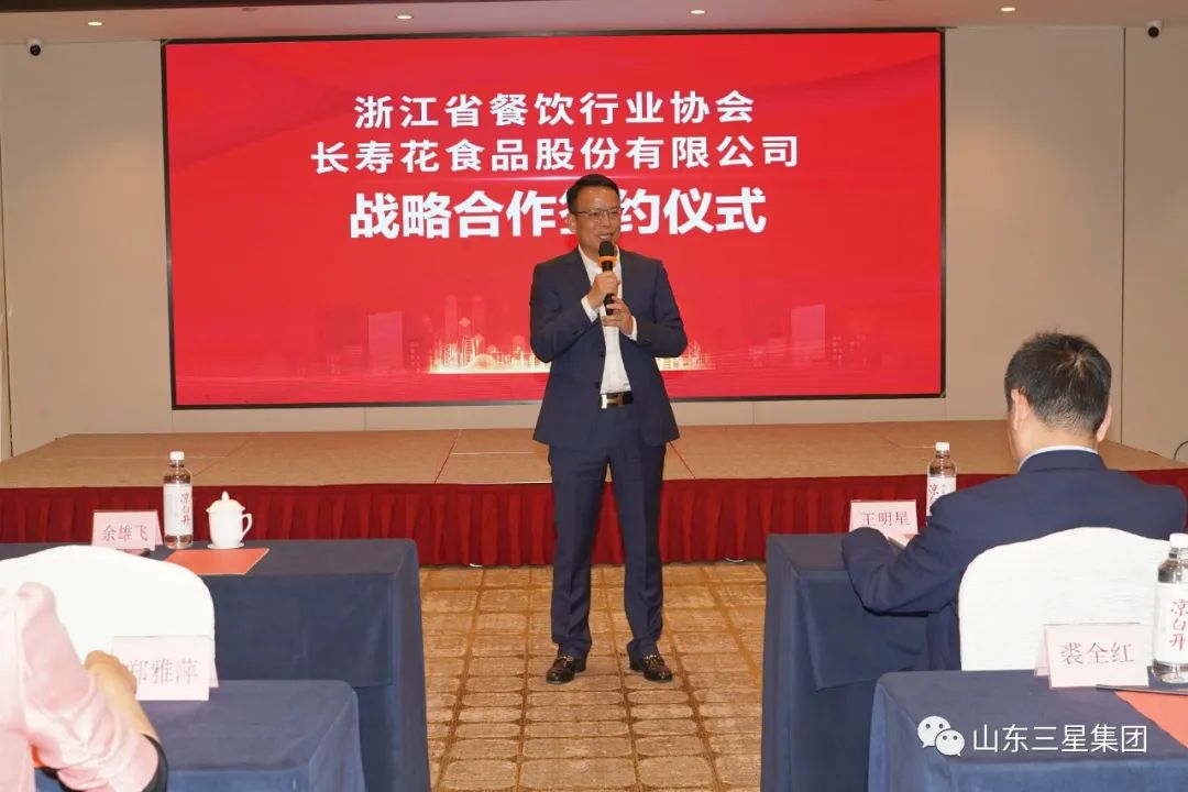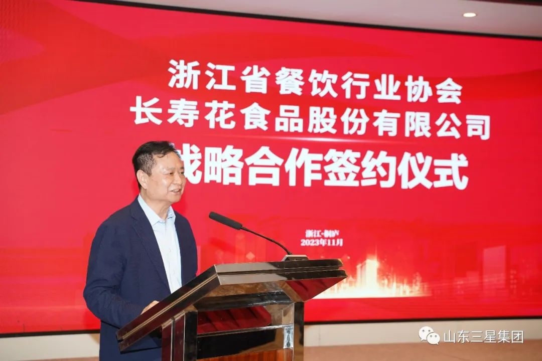 王明星对浙江省餐饮行业协会为百姓谋求健康、安全、营养“舌尖美味”的社会担当意识和龙头引领作用表示高度赞扬,并对其给予长寿花品牌理念及产品品质的充分肯定表示感谢。