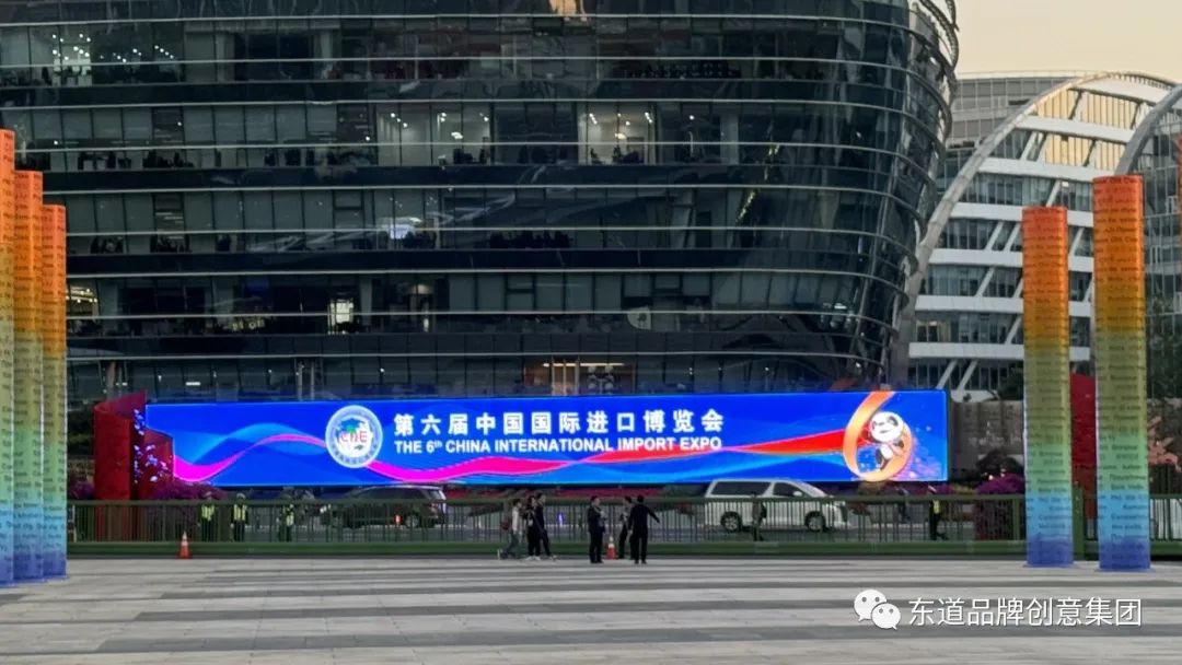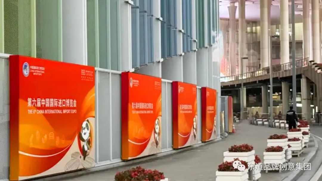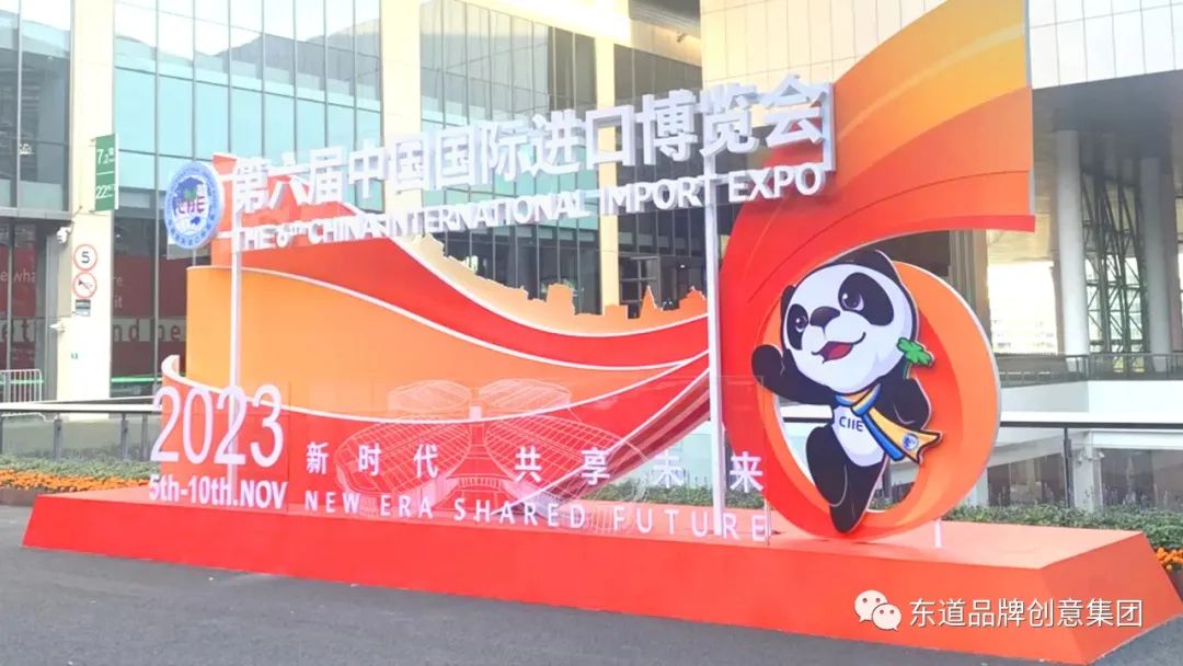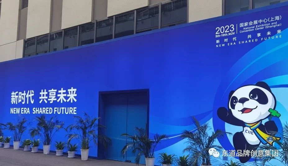 2018年,在首届进博会举办之际,东道品牌创意集团为进博会提供了会徽设计、VI设计、吉祥物设计、IP打造、会议系统设计等服务。