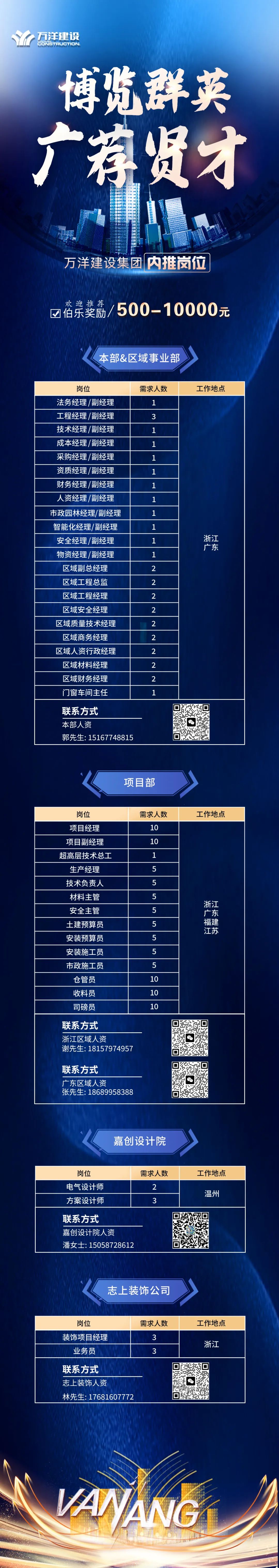 博览群英 广荐贤才 | 万洋建设11月内推岗位