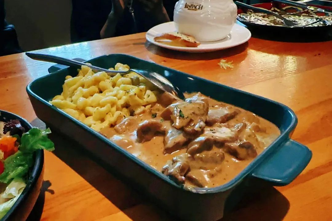奶油汤汁搭配面筋和口蘑味道浓郁