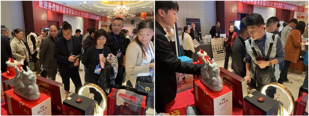 湖北石花酒业旗帜产品霸王醉典藏、君享、一品石花及石花多巴胺系列招财猫酒等产品在现场进行了展示和产品介绍。