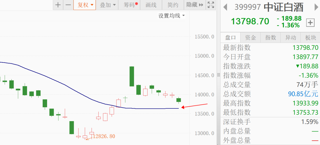 20日线,月线,是我观察的波段趋势线,$中证白酒$预计下周会回踩月线,不跌破的话,将是我的操作位置,到时候我的操作文章里也会跟踪来说。