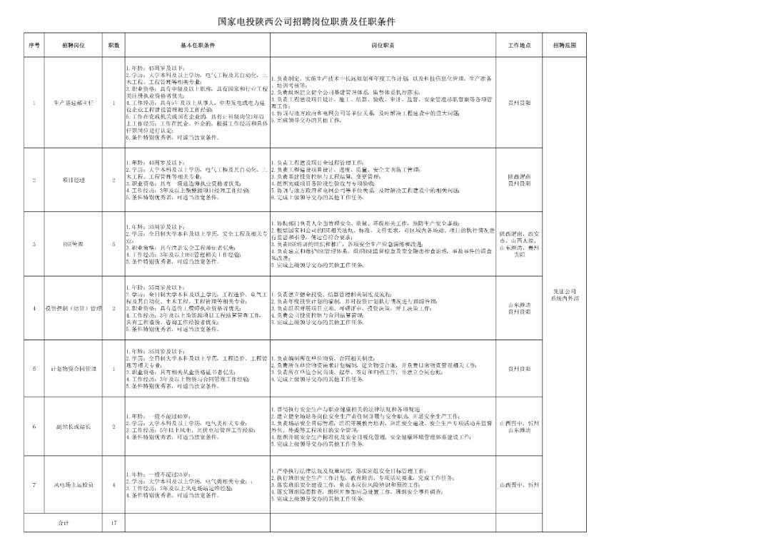 1.国家电投陕西公司招聘岗位职责及任职条件