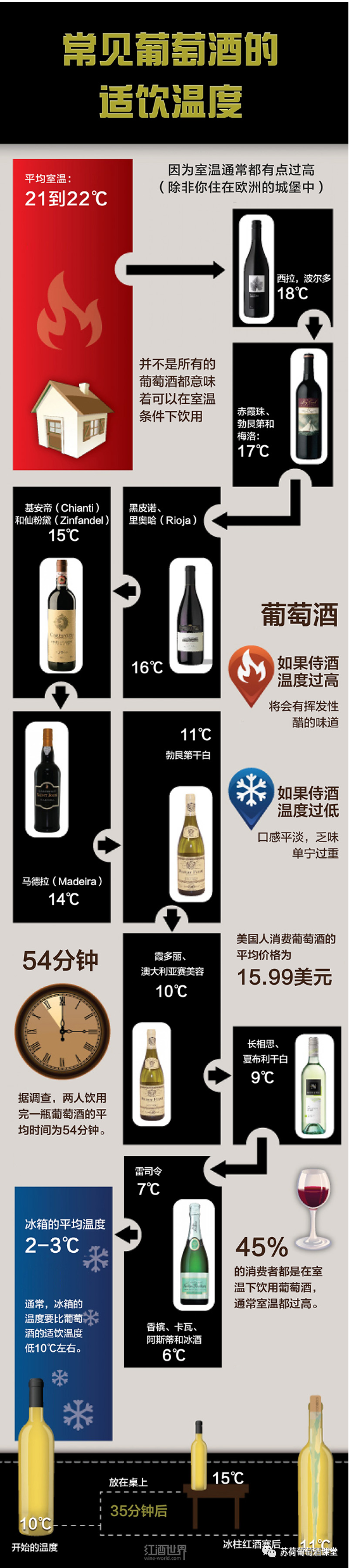 导语:温度过高或过低都会影响到最终品尝的口感和风味。如何把握好葡萄酒的最佳饮用温度?各种葡萄酒最佳饮用温度到底又是多少呢?