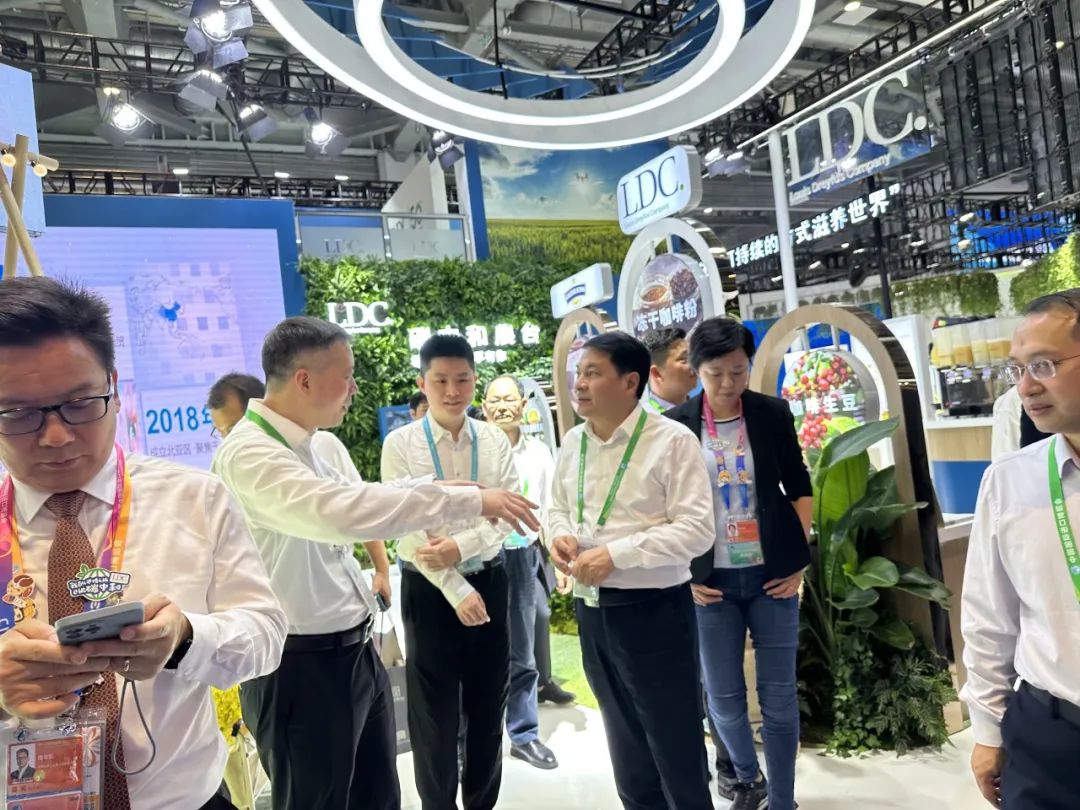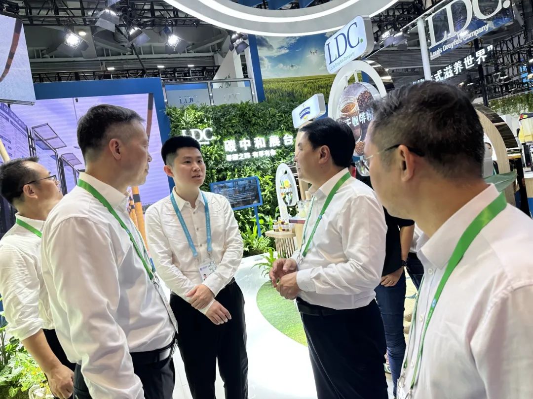 11月5日我司总经理叶戈硕先生在合作商路易达孚展台接访了漳州市洪泰伟副市长、漳州市商务局沈元标副局长、漳州开发区经发局金彦云局长等领导一行,介绍我方与路易达孚的合作业务,并随访菲律宾展馆。