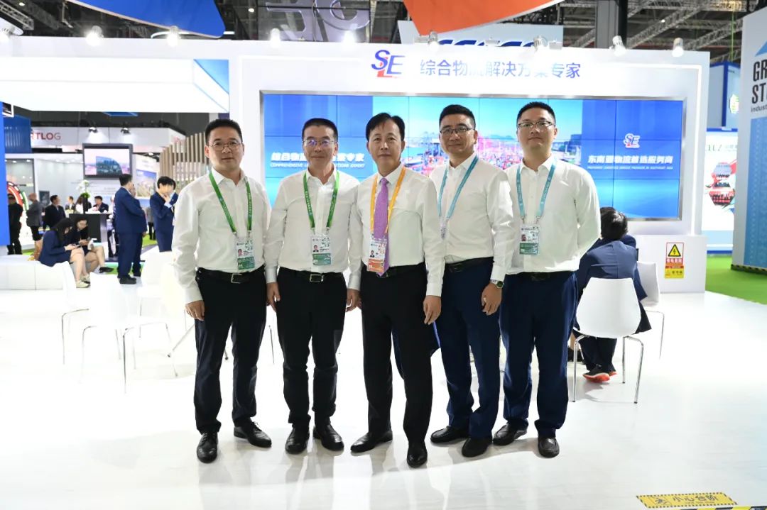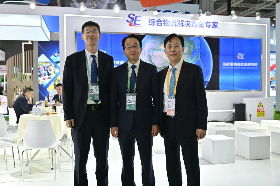 浙江省海港集团党委副书记、董事、总经理陶成波和宁波舟山港股份有限公司党委书记、总经理王峥莅临东南展台。