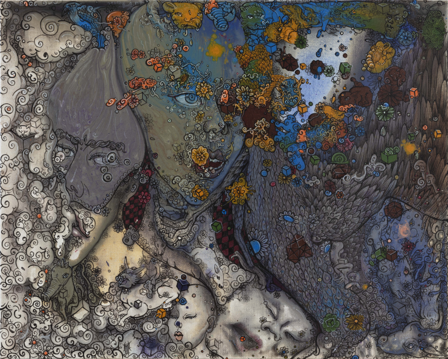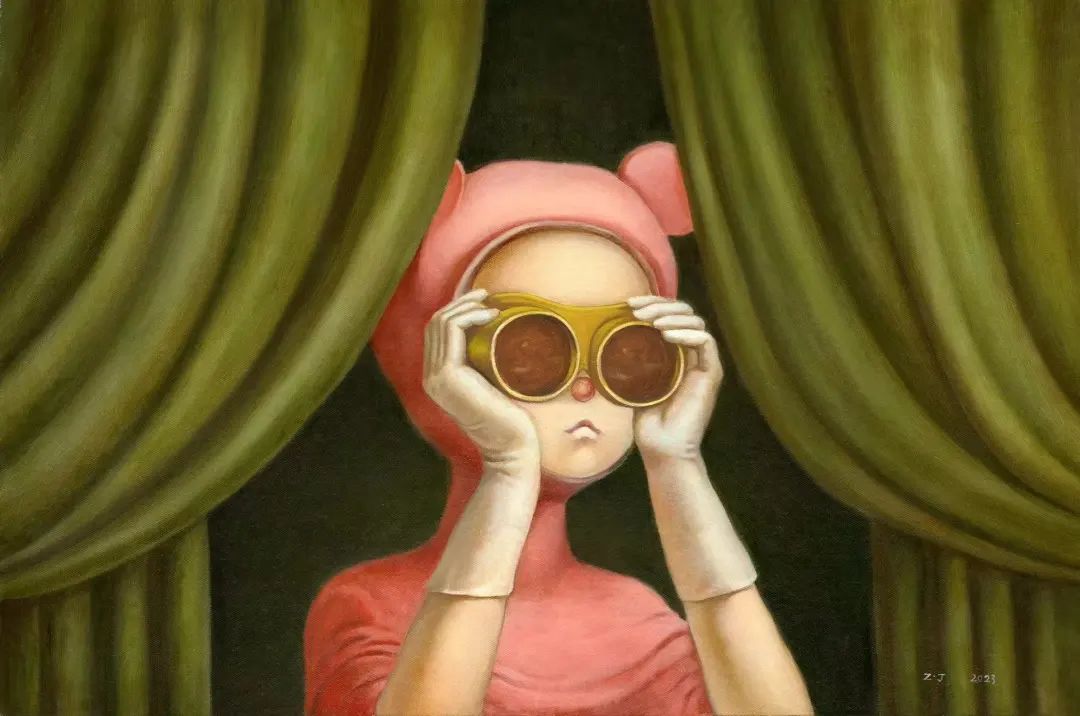 张静在自己的作品中虚构了一个极具戏剧性且性别模糊近似小丑的形象贯穿始终。她眼角下垂,看起来忧伤而孤独,在亦真亦假的童话世界里向世人述说着现实社会中的所有遭遇。或许在张静的眼里,那就是一个梦的开始。张静在自我的“梦游国”里,把这种浪漫塑造成了一个个特别的形象。无论是个体的造像,还是在不同场景中的角色,张静都是将日常生活的经历和个人心理体验的情感注入画面中,在“梦游国”扮演着现实中的各种理想的身份。特别是她近几年创作的一批纸本作品,以微观和记叙的方式展开,轻松自由的描绘出她内心和日常的情绪,这不仅是张静“梦游”的印记,更是多数人生命成长中的现实。