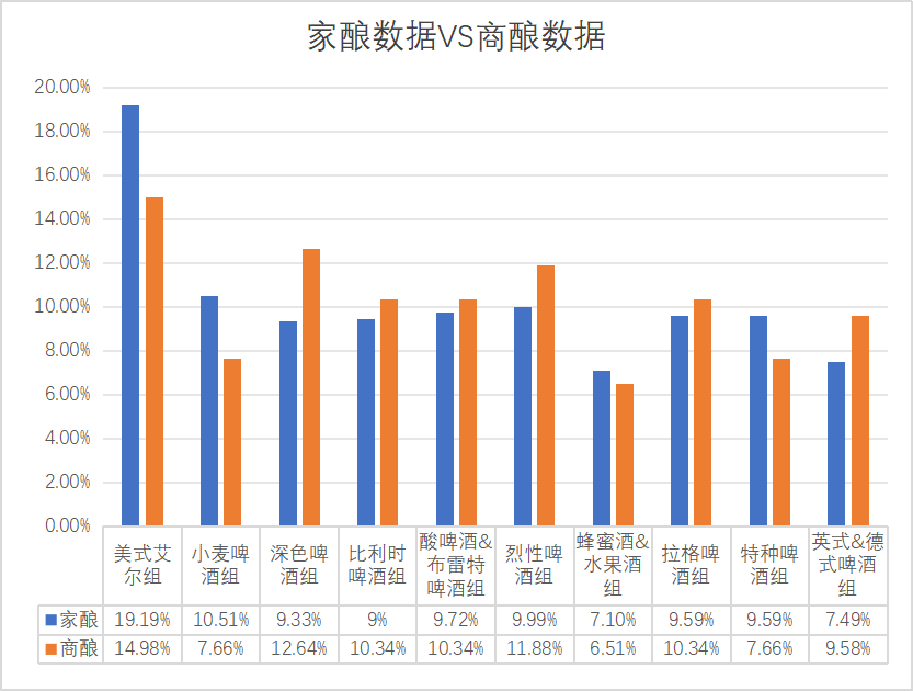 大师杯开设商酿赛事有两年的时间,坚持贯彻了大师杯“以人为本”的核心方针。即便是商酿比赛,也从以往其他赛事常见的直接给优秀作品颁奖,改为了给优秀作品的酿酒师颁奖。以及预赛入围,决赛需要重新设计配方并酿造一款全新啤酒的比赛赛制。本身的赛制是完全创新性的,目前全球没有类似赛制的啤酒赛事,故国内的商酿厂牌需要有更多的时间来理解并调整他们的参赛逻辑。从2023年家酿和商酿的对比数据来看,商酿组别之间的差距会比家酿的更小,甚至是美式艾尔组别。我认为这也代表着越来越多的酿酒师希望通过酿造差异化的啤酒风格,来获得自己特有的品牌标签以及独特的细分市场;这也代表着国内的精酿行业进入了更加成熟的阶段。对比2020年的参赛数据,我们可以发现:美式艾尔组、小麦啤酒组、深色啤酒组这三个组别的参赛数量有所减少,其中影响最大的是美式IPA(浑浊IPA)、德式小麦、世涛波特这三类风格。