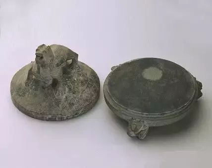 辟邪盖三熊足石砚,汉,通高14cm,直径14.6cm