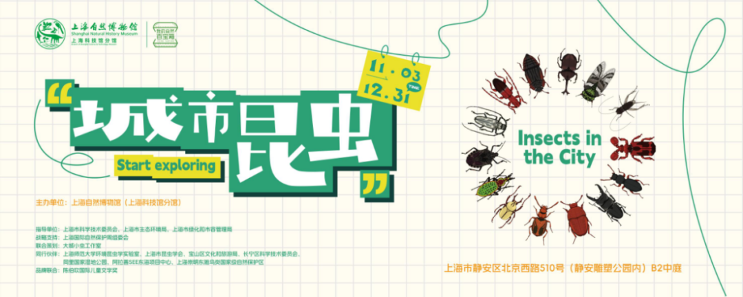 “城市昆虫”生物多样性主题展由上海自然博物馆(上海科技馆分馆)主办,上海市科学技术委员会、上海市生态环境局、上海市绿化和市容管理局指导,上海国际自然保护周组委会战略支持。