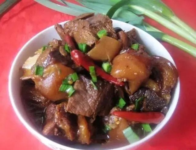 羊肉适量、辣椒适量、盐适量、冰糖适量、啤酒适量、老抽适量、甜面酱适量、豆瓣酱适量、姜适量、八角适量、桂皮适量、青蒜适量。