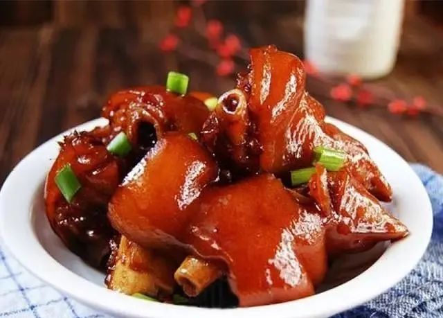 8、待猪蹄软烂后,开盖,转大火收汁,直到汤汁粘稠,关火撒上葱花即可。