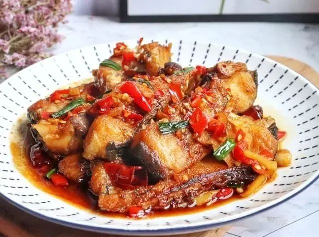 2、炒锅上火,油温七成热时放入鱼块煎黄捞出备用。