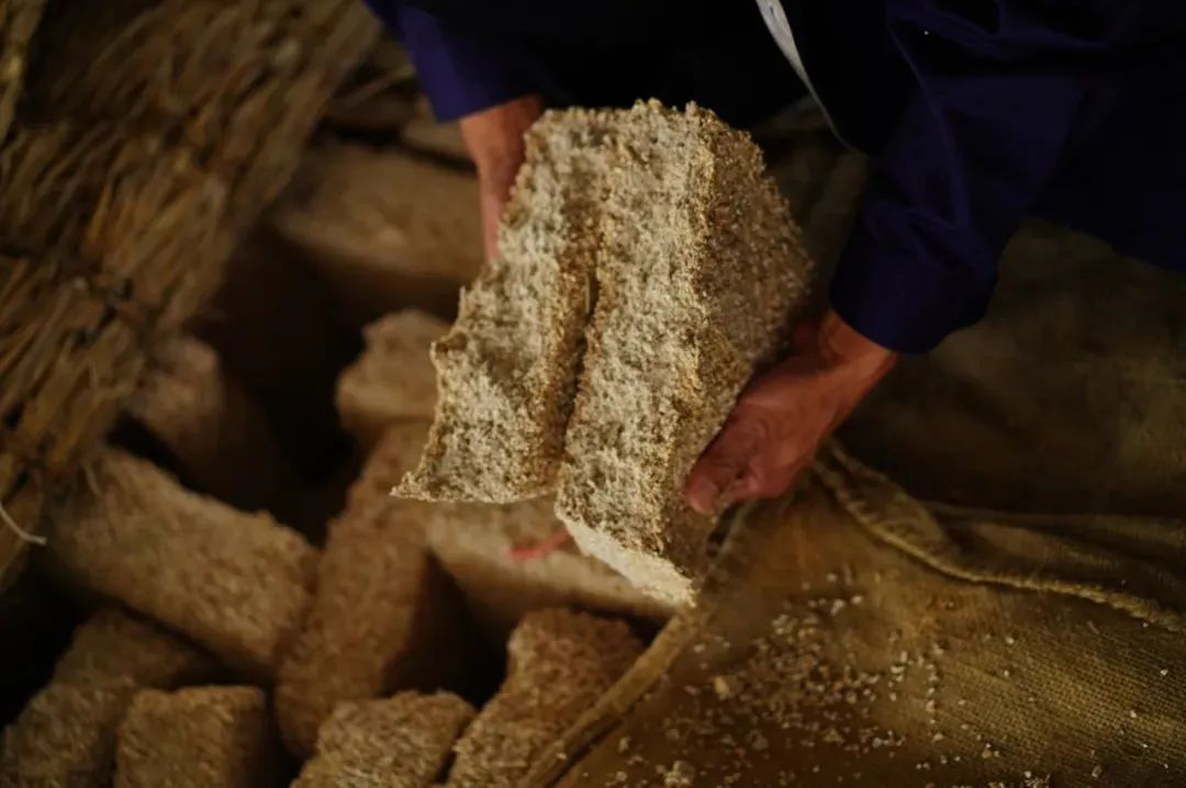 每年秋天,制曲师傅们都会开始自制麦曲。培育成熟的麦曲,里外都布满细密的白色菌丝。这是一块发育完整的麦曲,应有的样子——而这也正是一坛陈酿黄酒的风骨所在。