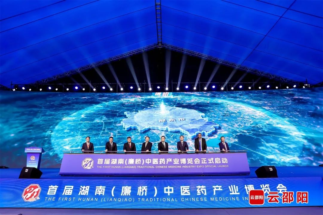 黄璐琦代表国家中医药管理局对此次博览会的举办表示祝贺。他指出,邵阳中医药文化源远流长,中药材资源得天独厚,中医药产业硕果累累。希望湖南和邵阳立足资源优势、立足传承创新、立足产业合作,充分发挥药博会的载体和抓手作用,在培育壮大中医药产业集群、推进中医药体制机制改革、健全完善中医药服务体系等方面大胆创新,努力开拓中医药发展的有效路径,加快推动中医药产业高质量发展,为维护和促进人民健康作出更大贡献。严华代表邵阳市委、市政府向出席活动的各位领导和嘉宾表示欢迎,向长期以来关心支持邵阳发展的各界人士表示感谢。他说,当前,邵阳正深入学习贯彻党的二十大精神和习近平总书记关于中医药工作的重要论述,全力建设湖南省国家中医药综合改革示范区先导区,加快推进中医药强市建设,奋力开创健康邵阳建设新局面。期盼各位嘉宾多为邵阳中医药传承发展把脉问诊、建言献策、牵线搭桥。希望广大企业家来邵投资兴业,共享发展机遇、共创美好未来。陶学永表示,将以此次博览会为契机,以创建国家中医药综合改革示范区为抓手,面向群众健康需求,面向经济建设需要,充分调动各方力量,大力开展产学研协同攻关,加强中药材标准化体系建设和研究,加快建设中药材大基地、培育中药大品种、做强中医药大企业、打造中医药大品牌,推动产业链、创新链、价值链贯通发展,加快形成中部地区中医药产业高地。邵东市廉桥镇是全国第一批中药材特色小镇、产业强镇,被誉为“南国药都”。目前廉桥中药材市场共有经营户1200多户,经营中药材2000余种,日吞吐药材400多吨。2022年,邵东市中药材全产业链产值120亿元,玉竹、玄参、射干等中药材产销量和出口量居全国前列。 本届中医药产业博览会以“振兴中医药产业、弘扬中医药文化”为主题,由邵阳市人民政府、湖南省中医药管理局主办,邵东市委、市政府承办,将举办全国中医药发展(廉桥)论坛、中药材供销见面会、国医名医坐堂问诊、药膳文化节等系列活动。博览会采用“线上+线下”与“主场馆+市场区”相结合的会展模式,将整个廉桥药材市场作为展示区,并设置2万平方米的主场馆,共有400余家医药企业、200家专业采购商、1200家门店参展,将打造一场集展览展示、学术交流、招商推介、供需对接、产业协作于一体的盛会。
