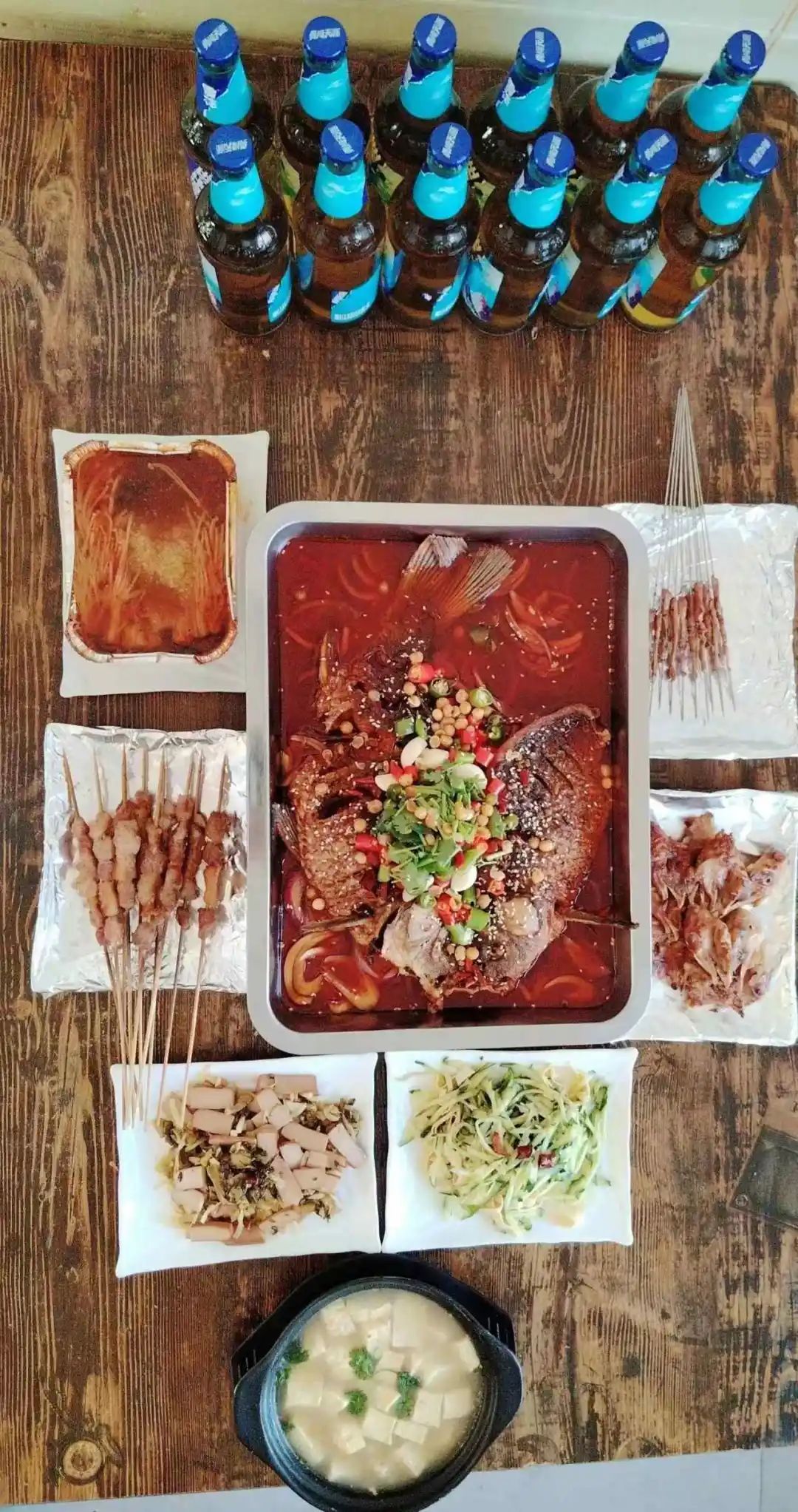 原价268元的特色套餐转发朋友圈只需158就可享受,包含特色烤鱼,凉菜,烧烤,锡纸,砂锅,啤酒12瓶,3至4人餐。