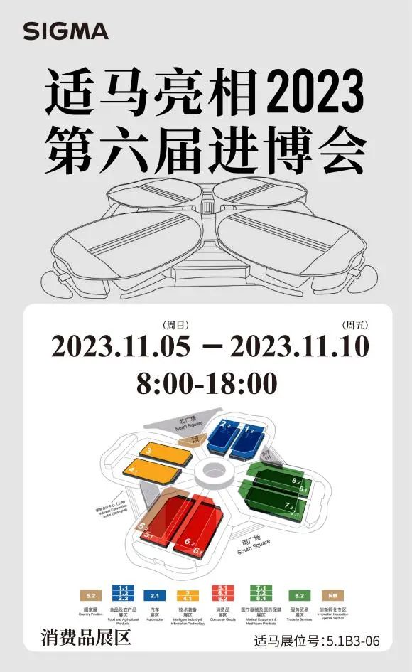第六届中国国际进口博览会于2023年11月5日至10日,在国家会展中心(上海)举办。在本次展会上,SIGMA适马作为连续第六年参加进博会的数码品牌展商,携fp系列无反相机及SGV系列镜头等产品亮相,并设置多个场景区域,为参展观众提供精彩多元的影像文化体验,展现适马深刻的品牌内涵与卓越的技术创新力。