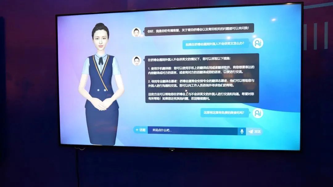 此外,侨博主会场、会展中心、火车出站口等十几个点位均设有数字人立牌,游客可通过手机扫描“扫一扫 数字人陪您逛侨博”的立牌,邀请数字人导游为您服务,获得更加便捷的语音播报和互动体验服务。